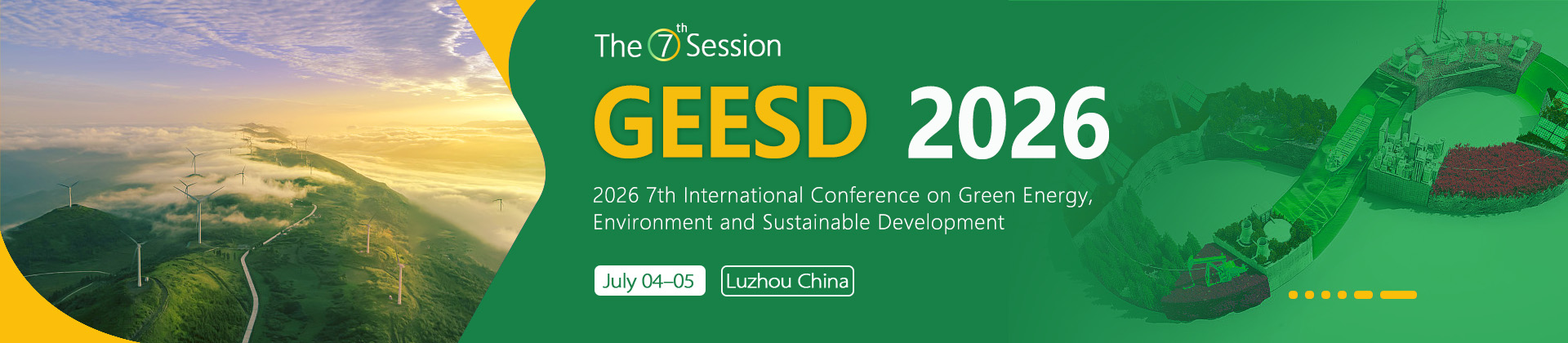 Following six successful editions, the 7th International Conference on Green Energy, Environment and Sustainable Development (GEESD 2026), supported by Smart Energy Storage Institute (College of Electric Power, Inner Mongolia University of Technology) and China Agricultural University, will be held from July 4-5, 2026 in Luzhou, Sichuan, China.